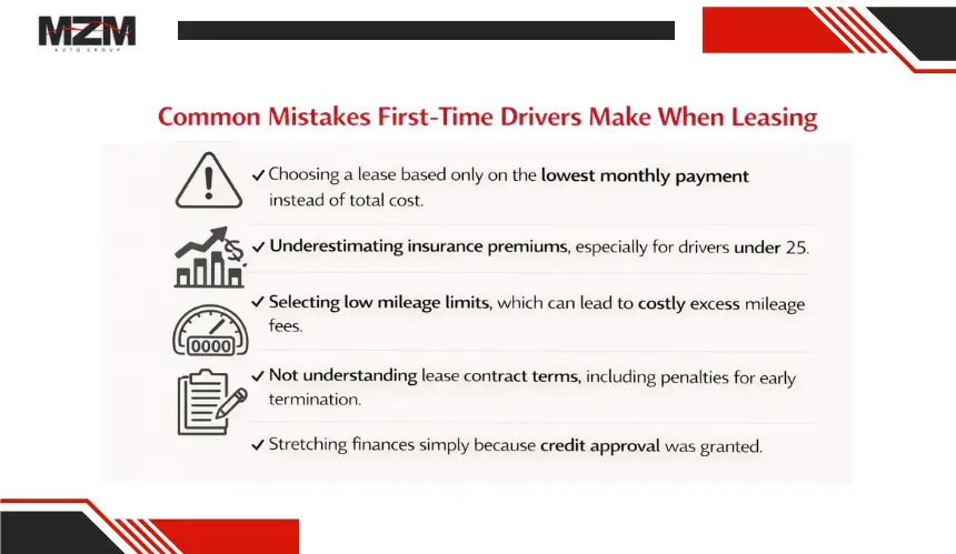 For first-time drivers, the leasing structure can appear straightforward on the surface. But many financial pitfalls occur because beginners focus on approval rather than long-term cost clarity. Avoiding these mistakes can prevent unexpected expenses and contract stress.